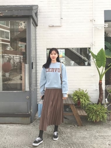 屬於大地色基本色的深咖啡,有著百搭實穿的優點,就算是穿搭新手也能輕鬆駕馭出理想風格,以深咖啡的上衣能製造一股安定沈穩的韓妞氣質,選擇長版 TEE 或針織上衣,簡單搭配褲襪就能為造型瞬間加分。