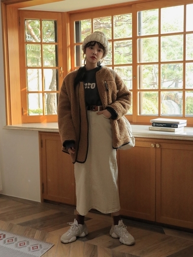 秋冬常見的棕色調,能提升膚質的好氣色之外,更為內斂的質感品味由裡到外展現,在天冷時不妨選件棕色的大衣外套,以熱門元素的毛絨面料使季節感更加倍,隨性搭配毛衣或帽 TEE 就相當好看。