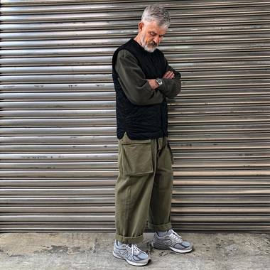 ▲ 黑色絎縫背心加上軍綠工裝褲,濃濃的街頭風格和層次感立馬展現出來!鞋子則是他最愛的品牌 New Balance,幾乎每套都能看見 NB990 的蹤影!而 Vernon 也會很細心的打上各個著用的單品品牌,讓大家都能因此更好搜尋到喜歡的單品!(圖片來源)