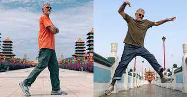 ▲ 素 Tee 和長褲簡單的組合,也是 Vernon 愛穿的穿搭公式,唯一不變的是百搭的灰 New Balance!而或許也因為熱愛攝影的關係,他在台灣各地拍的照片一點都不像是觀光客的拍攝角度,各張都很有型,讓人覺得是個很幽默的爺爺呢!(圖片來源)