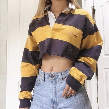 短版上衣搭配高腰單品已經是時下女孩們都十分熟悉的穿搭方法,穿著短版上衣不一定要露出整個腹部,也可以利用下身蓋住肚臍以減少露出的肌膚面積,展現腰部最細的部分,更可以藉此拉長腿部線條,達到更好的比例,因此這個搭配法對於大多數女孩來說都十分合適。